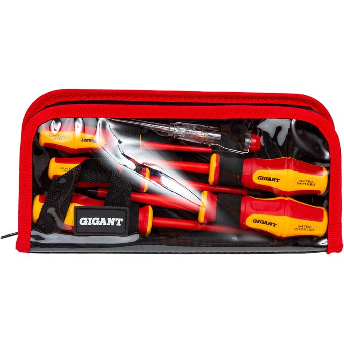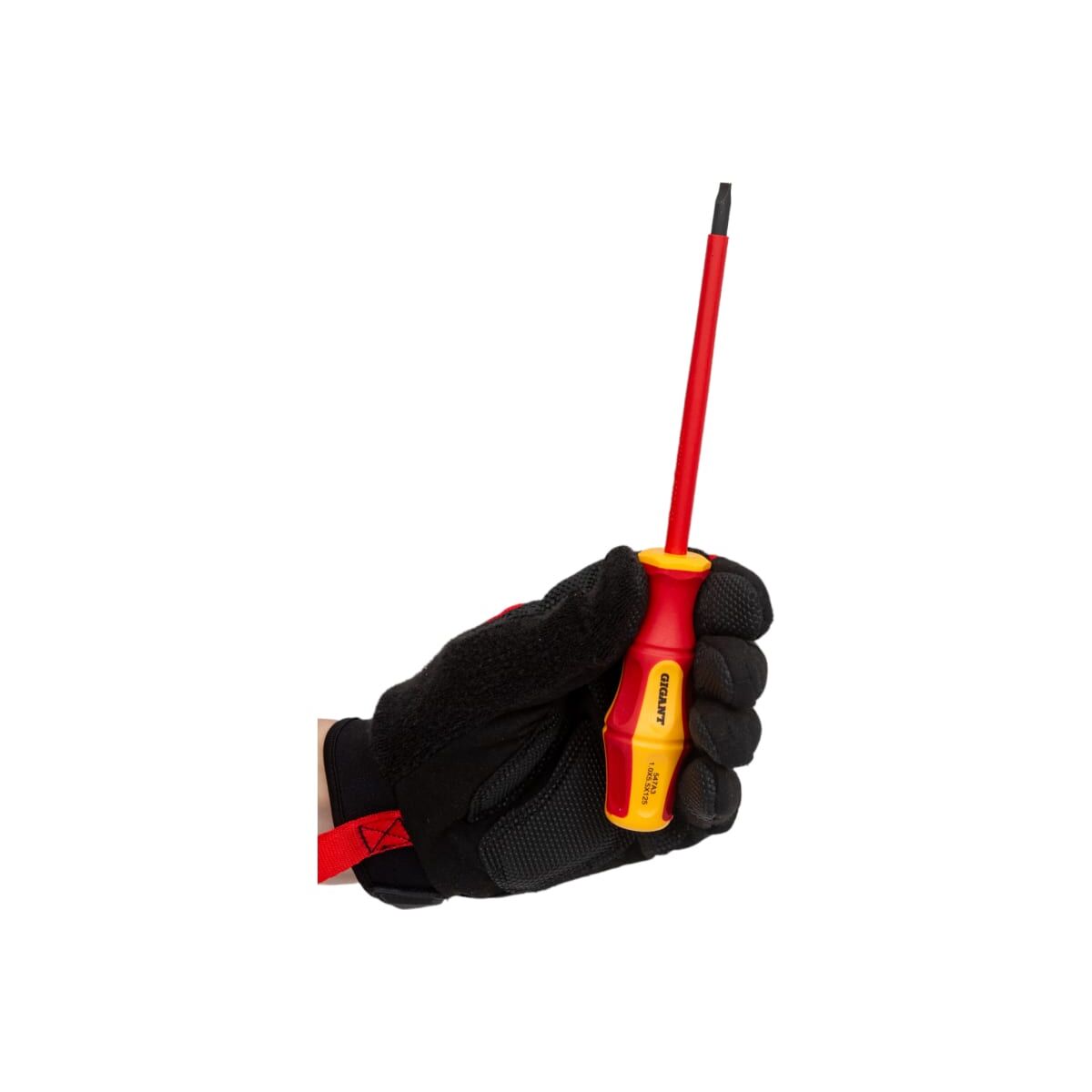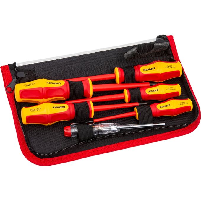Набор диэлектрических отверток Gigant GBSD-2 подойдет для работы электрика. Инструмент удобен в использовании за счет полной изоляции рукоятки и стержня. Каждый инструмент оснащен рукояткой, которая не скатывается с наклонной поверхности. Прорезиненные вставки исключают скольжение ладони.