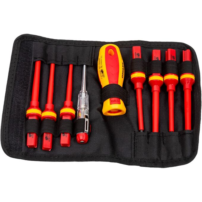 Набор диэлектрических отверток Gigant GBSD-6 предназначен для проведения монтажных работ под напряжением до 1000 В. Инструмент оснащён прямыми рукоятками с мягкими прорезиненными вставками. Стержни отвёрток выполнены из прочной хром-ванадиевой стали. Набор укомплектован сумкой, которая удобная для переноски инструмента.