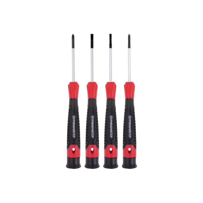 Этот набор отверток для точных работ SL/PH от ГРАНДМАСТЕР – идеальный подарок мужчине на день рождения, Новый год и 23 февраля, подарочный набор мужчине, который ценит качественные инструменты для дома. В набор входят 4 отвертки с двухкомпонентными рукоятками, обеспечивающими комфорт и надежный захват без скольжения, что снижает нагрузку на кисть при работе с мелкими крепежными соединениями.