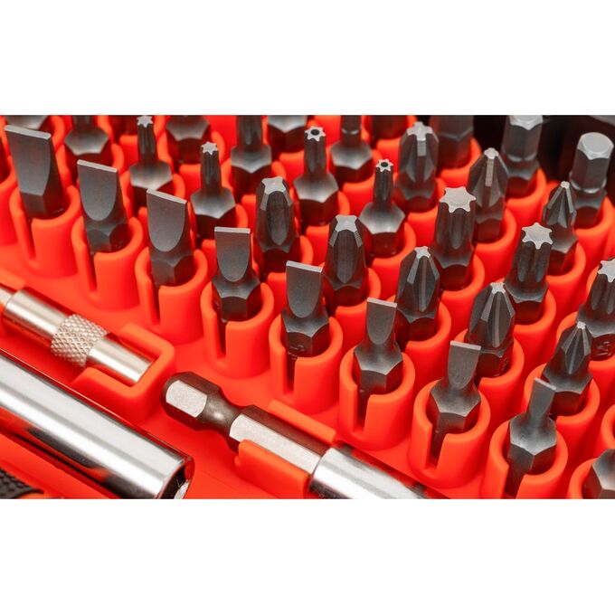 Набор отверток и бит Gigant 112 предметов GBSS-112 включает плоские, крестовые, квадратные отвертки, а также отвертки для точечных работ и Torx. Инструменты выполнены из легированной стали S2, а дополнительные аксессуары – из хромованадиевой стали. Закаленные наконечники укрепляют стержень и обеспечивают устойчивость к деформации.