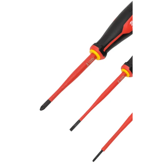 Набор трехгранных отверток Milwaukee VDE PZ/SL + тестер напряжения - 5 ед. 4932478737 позволяет работать практически с любой электроникой. Удобные рукоятки не скользят и не проворачиваются. Это позволяет эффективно вращать тугой крепеж.