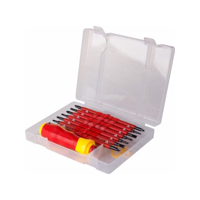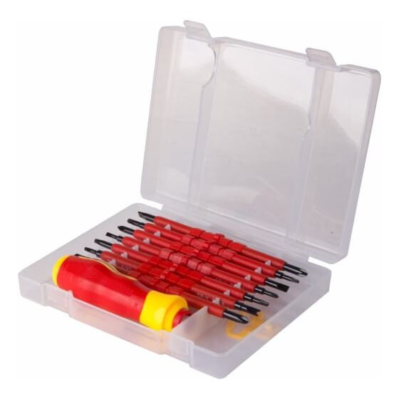 Набор отверток имеет изолирующее покрытие, которое позволяет осуществлять электромонтажные работы.