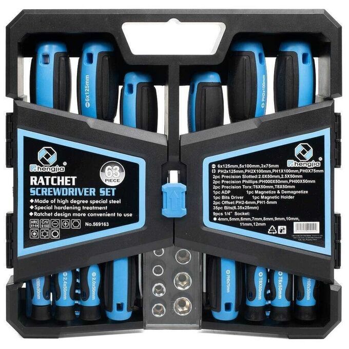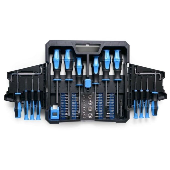 Набор отверток с битами содержит популярные типоразмеры моделей. Кроме этого в комплект входит магнитный удлинитель для работ в труднодоступных местах.