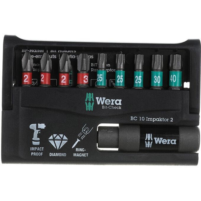 -Держатель с круглым магнитом 897/4 Impaktor R : 1/4"x75 Насадки: PH 2x25 - 3 шт; PH 3x25 Насадки: TX 25x25 - 3 шт; TX 30x25; TX 40x25