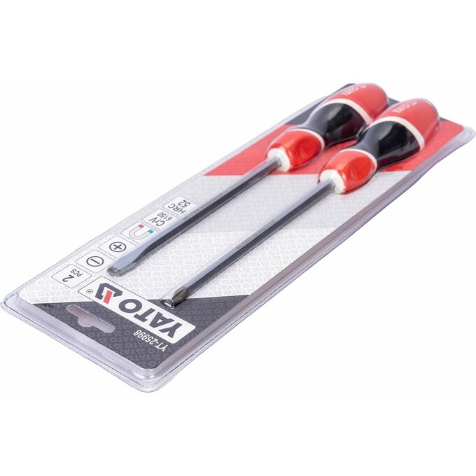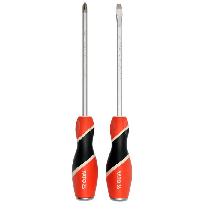 Набор ударных отверток YATO 2шт YT-25998 состоит из двух профессиональных отверток: шлицевой и крестовой, что позволяет использовать его в быту и профессиональной деятельности для работы с широким спектром винтов и шурупов. Шток отверток изготовлен из стали с символом CrV6150 и имеет атласную поверхность.
