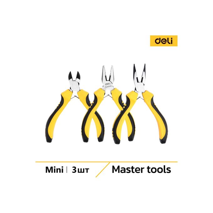 Этот набор мини-плоскогубцев Deli DL103201-3 станет незаменимым помощником как для профессионалов, так и для любителей, занимающихся ремонтом, электроникой, моделированием или любыми другими видами работ, требующими точности, удобства и надежности в использовании инструментов.