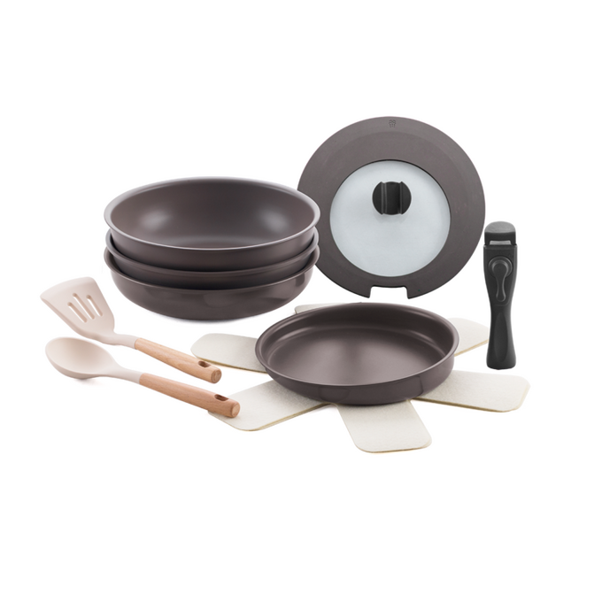 Набор посуды LARA LR01-301 кованый алюминий, 4 предмета + съемная ручка коричневый