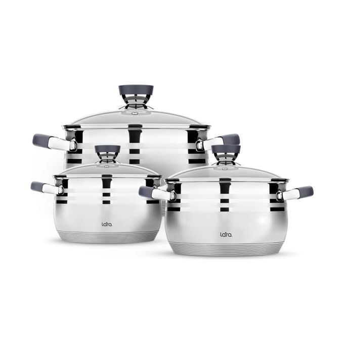 Набор посуды Lara MERCURY 16/18/22 см, 2.1 л, 2.9 л, 4.9 л капсулированное индукционное дно, полировка LR02-121 предназначен для домашнего использования.