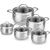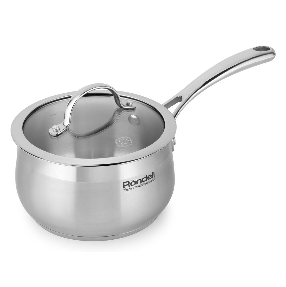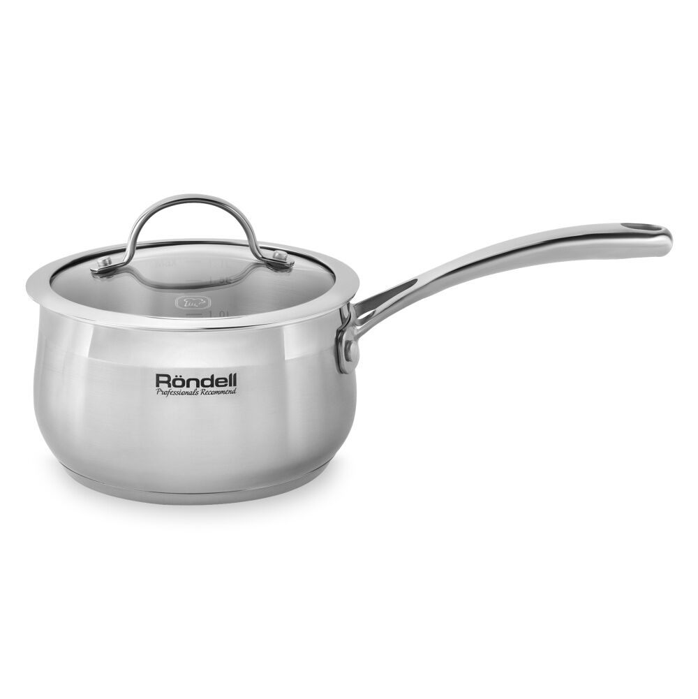 Состав комплекта: Кастрюли 18 см, 20 см, 22 см, 24 см, ковш 16 см со стеклянными крышками