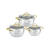 Ручки кастрюль, выполненные в стиле «под золото» с декором, добавляют набору изысканности и стиля. Внутренняя зеркальная полировка облегчает уход за посудой и обеспечивает антипригарные свойства, а комбинированная полировка снаружи придает кастрюлям современный и привлекательный вид.