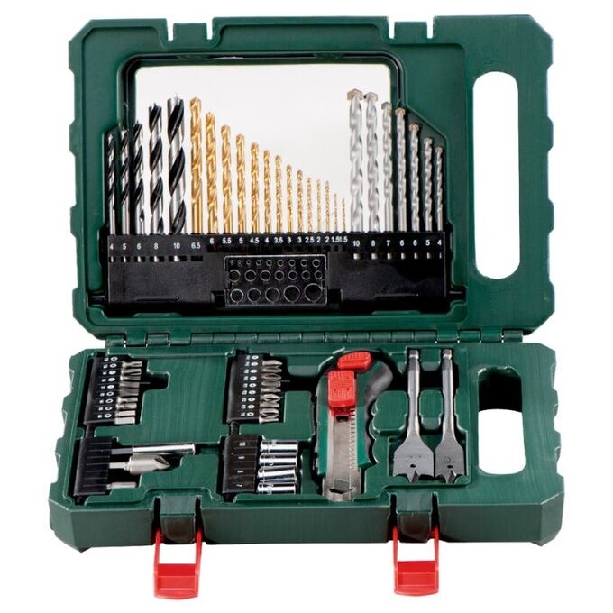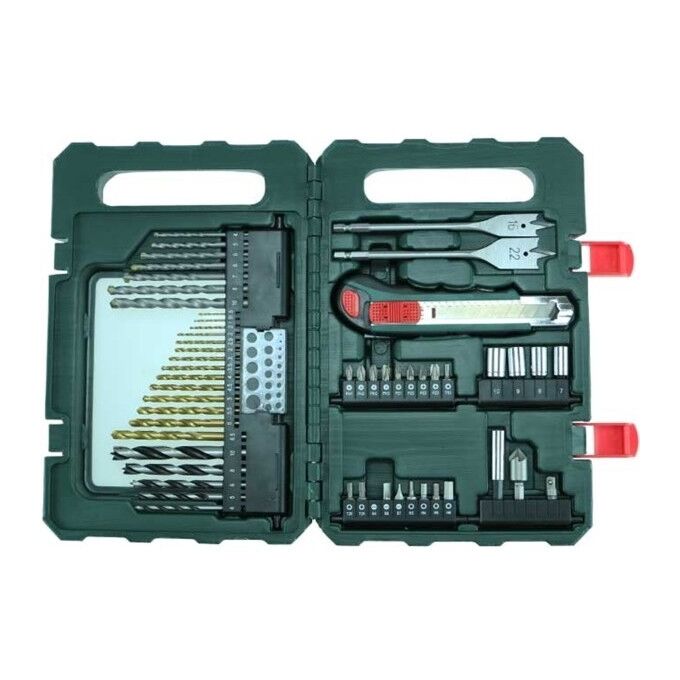по металлу HSS-TiN - 1,5 мм x 2, 2,0 мм x 2, 2,5 мм x 1, 3,0 мм x 2, 3,5 мм x 1, 4,0 мм x 1, 4,5 мм x 1, 5,0 мм x 1, 5,5 мм x 1, 6,0 мм x 1, 6,5 мм x 1; cверла по камню: 4,0 мм x 1, 5,0 мм x 1, 6,0 мм x 2, 7,0 мм x 1, 8,0 мм x 1, 10,0 мм x 1; буравы - 4,0 мм, 5,0 мм, 6,0 мм, 8,0 мм, 10,0 мм; перьевые: 16,0 мм, 22,0 мм