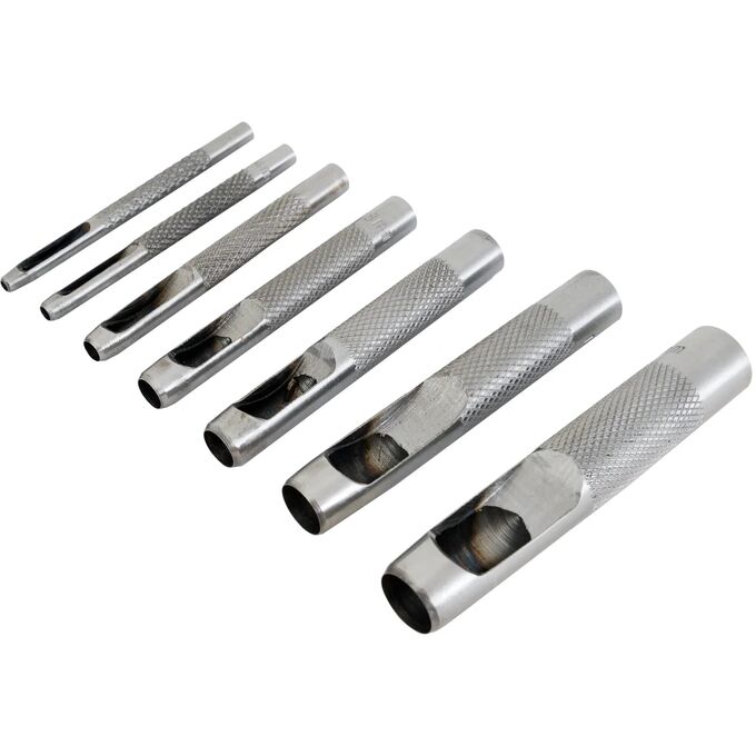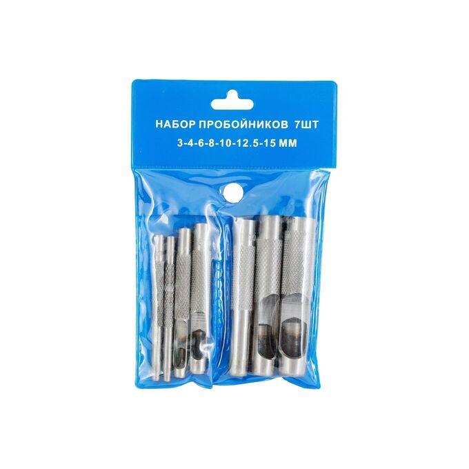 Набор пробойников Спец 3-15 мм, 7 шт. 2200103 предназначен для вырезания круглых отверстий в коже, войлоке, ткани и других подобных материалах. Пробойники выполнены из инструментальной стали, что обеспечивает прочность и надежность. Инструменты заточены и готовы к использованию. Наконечники закалены током высокой частоты, что гарантирует долгий срок службы.