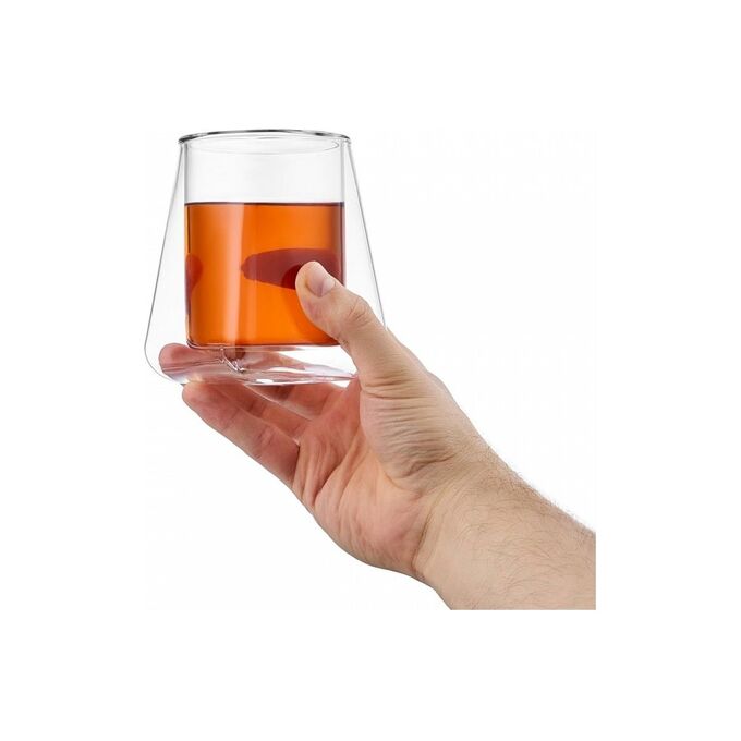 Двойные стенки придают уникальные свойства: горячие напитки в них медленно остывают, а холодные напитки, напротив, не нагреваются и кубики льда долго не таят.