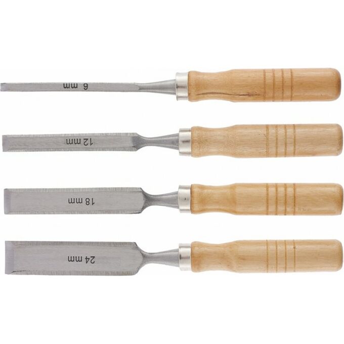 Набор стамесок Sparta 243965 6-12-18-24мм, плоские, деревянные рукоятки
