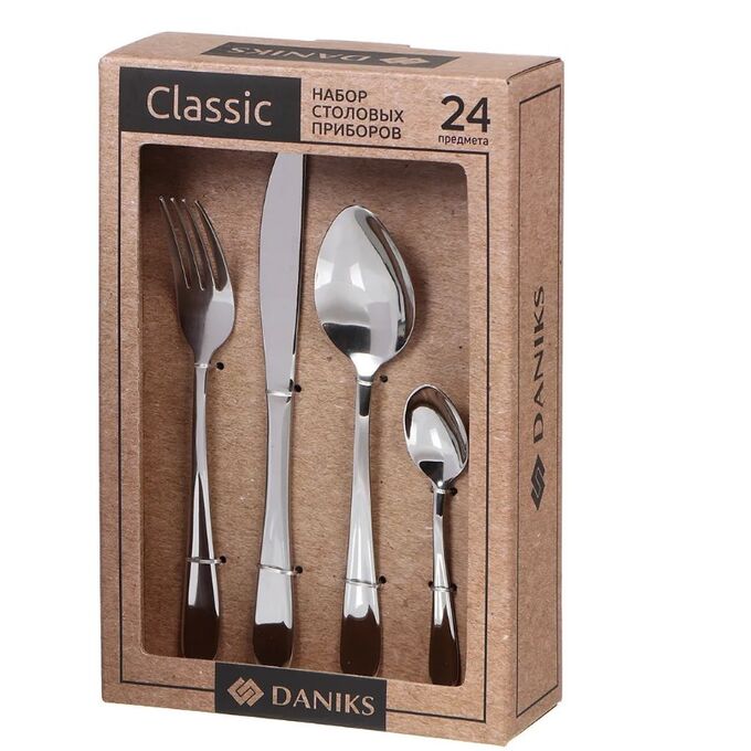 Набор столовых приборов выполнен из нержавеющей стали высочайшего качества и отличаются особой прочностью и долговечностью в использовании. Приборы расcчитаны на шесть персон. Предлагаемый набор выполнен в стиле минимализма. Идеально гладкая полировка облегчает уход, и создает приятные тактильные ощущения при их использовании. Столовые приборы станут прекрасным дополнением к посуде любого типа и к различной обстановке. Благодаря своей красоте и сиянию, эти приборы настраивают посетителей на праздничный лад.