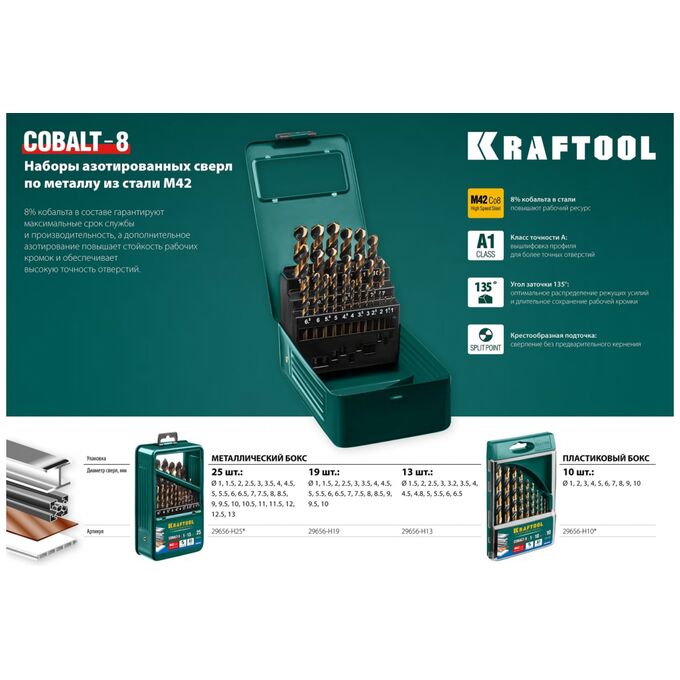 Технические характеристики набора сверл по металлу KRAFTOOL 29656-H13