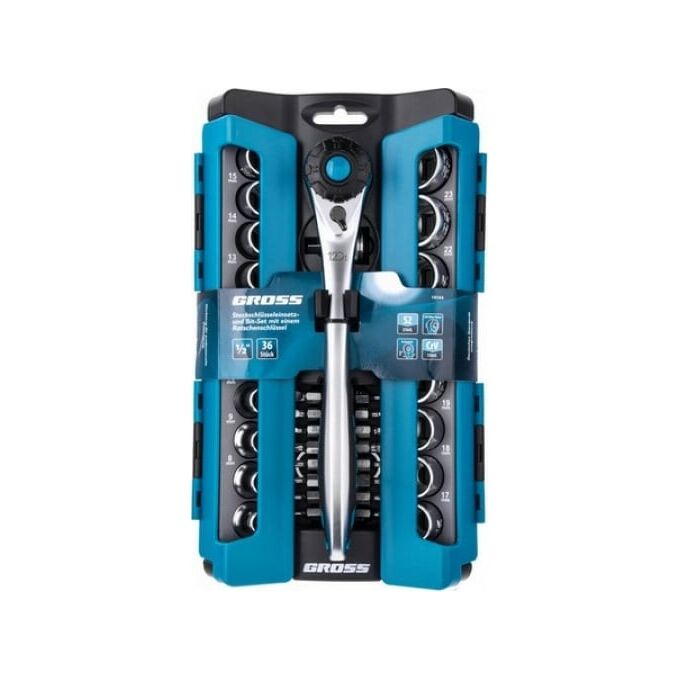 Набор торцевых головок Gross 14144 трещотка 120 зубьев 36 предметов