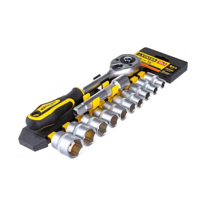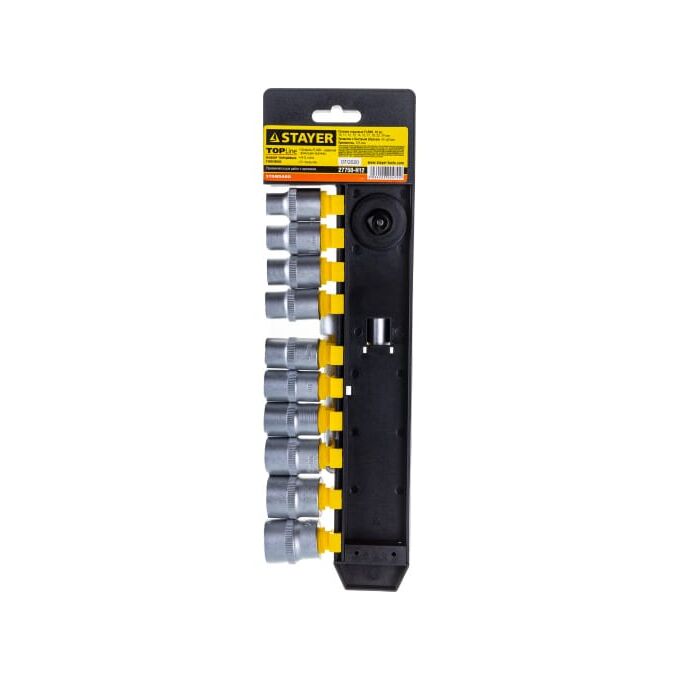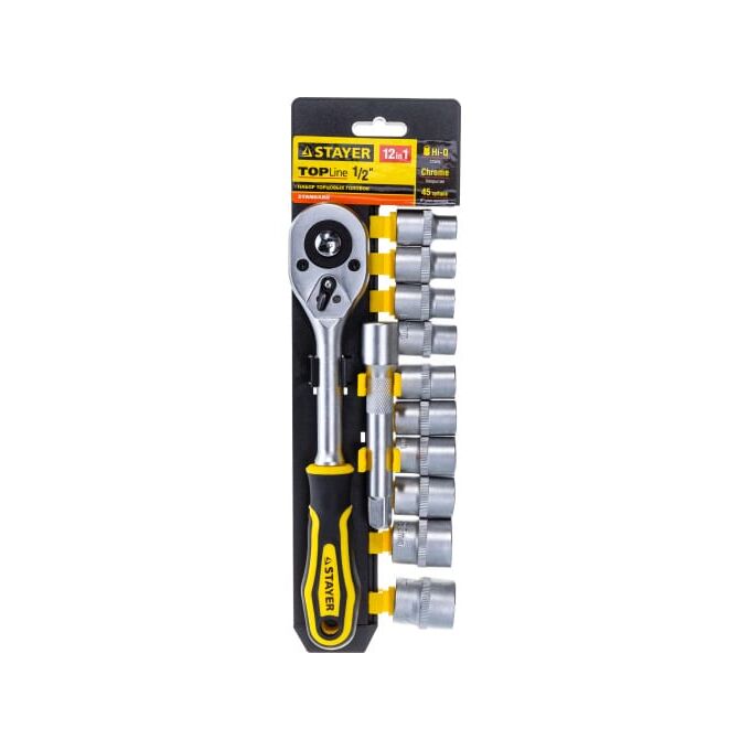 Набор торцовых головок Stayer Standard 27750-H12 1/2" на пластиковом рельсе/трещотка/удлинитель/10-24мм/12 предметов