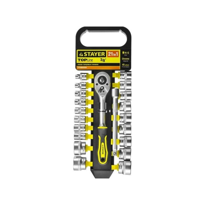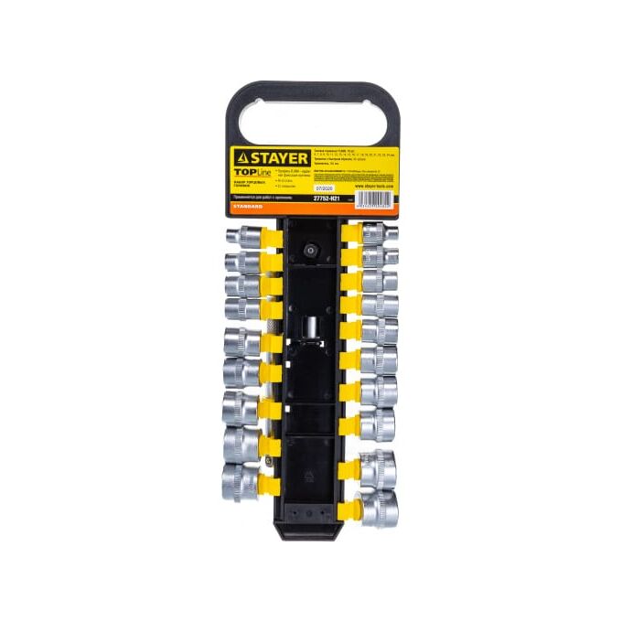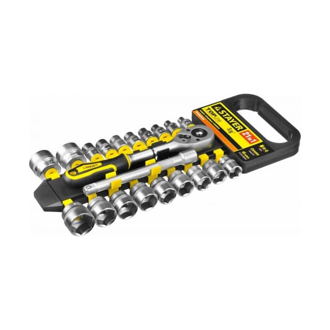 Набор торцовых головок Stayer Standard 27752-H21 3/8" на пластиковом рельсе/трещотка/удлинитель/6-24мм/21 предмет