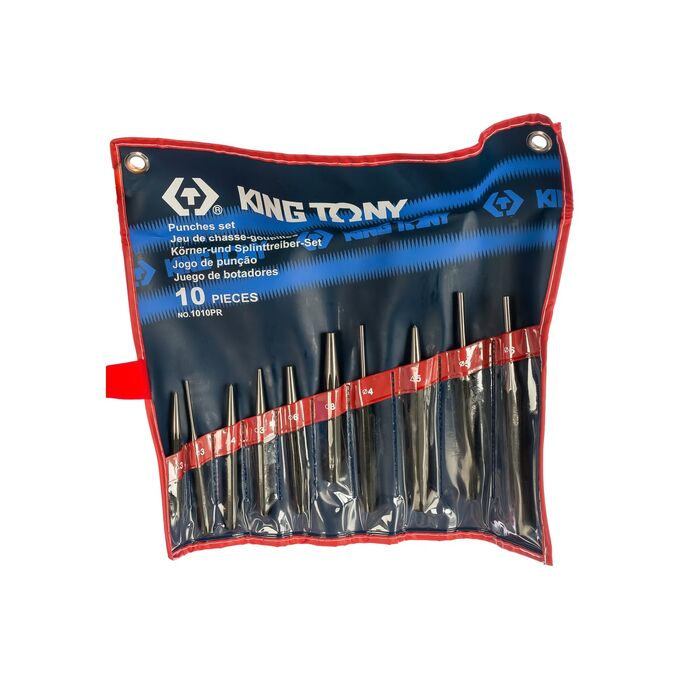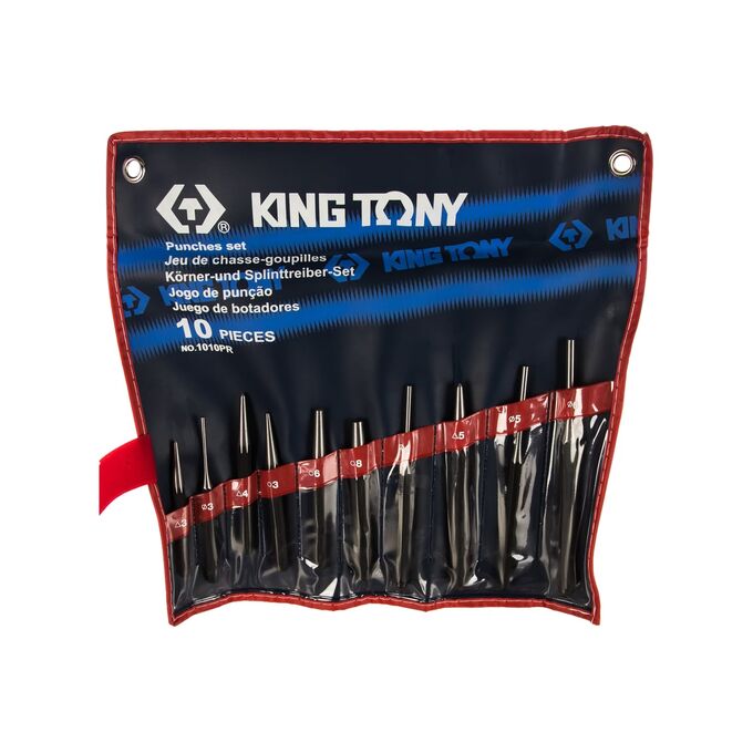 Набор выколоток, бородков, кернеров KING TONY 10 предметов 1010PR - это комплект ударного инструмента, который предназначен для создания меток на заготовках или выдалбливания отверстий. Изделия изготовлены из высокопрочной стали, стойкой к нагрузкам. Чехол для хранение имеет карманы под каждый инструмент.