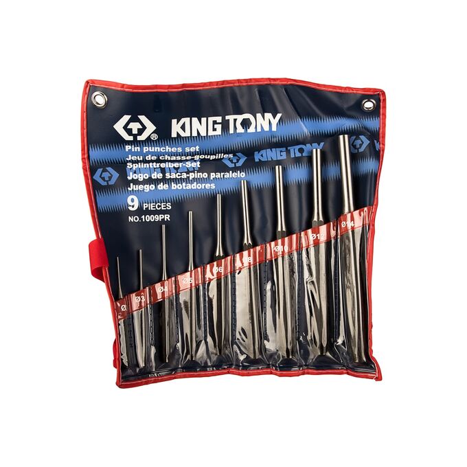 Набор выколоток 9шт KING TONY 1009PR представляет собой комплект ударных инструментов для выдалбливания отверстий в заготовках из различных материалов. Приспособления выполнены из прочной и качественной стали, выдерживают высокие нагрузки. В комплекте представлен широкий размерный диапазон для выполнения различных видов работ. Для хранения и транспортировки без риска утери компонентов каждая выколотка размещена в специальном чехле с прозрачными карманами. Чехол с инструментами удобно размещать над верстаком за счет двух проушин в верхних углах.