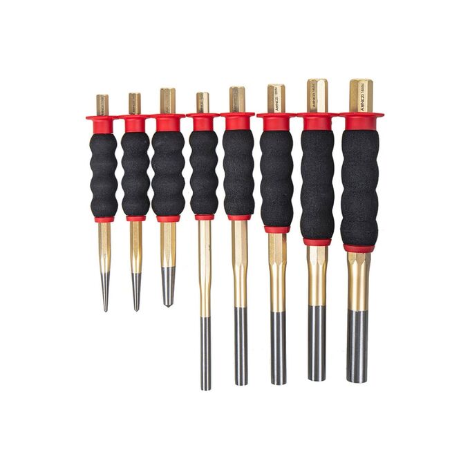 Набор выколоток, зубил и кернеров 13 предметов от Arnezi — это профессиональный комплект инструментов, предназначенный для выполнения различных задач по обработке металла, таких как рубка, выравнивание, кернение и другие слесарные работы. Набор включает в себя инструменты разного размера и формы, что делает его универсальным и удобным для использования в мастерской или гараже.