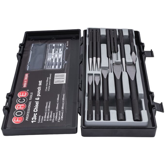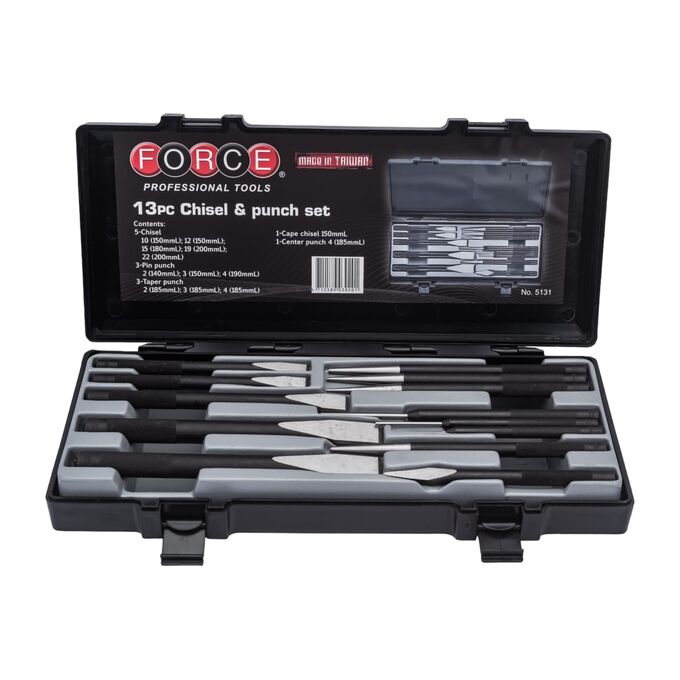Набор зубил и выколоток FORCE 5131 включает в себя надежный и качественный слесарный инструмент.