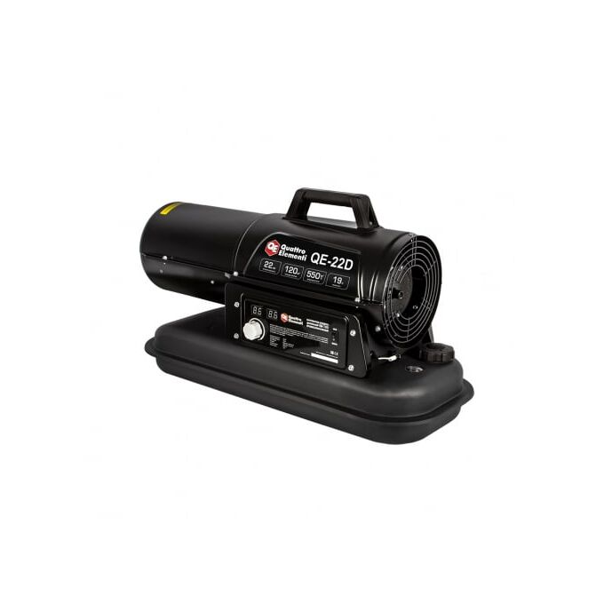 Дизельная тепловая пушка прямого нагрева QUATTRO ELEMENTI 243-905 QE- 22D предназначена для обогрева небольших проветриваемых помещений. Данное оборудование работает от сети 220В на дизельном топливе или керосине. Термостойкая окраска корпуса увеличивает срок службы тепловой пушки. Предусмотрен встроенный термостат и цифровой дисплей.