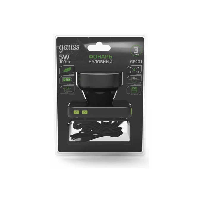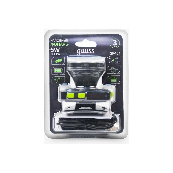 Технические характеристики Gauss GFL401 5W 100lm диммируемый Li-ion 3000mAh LED GF401