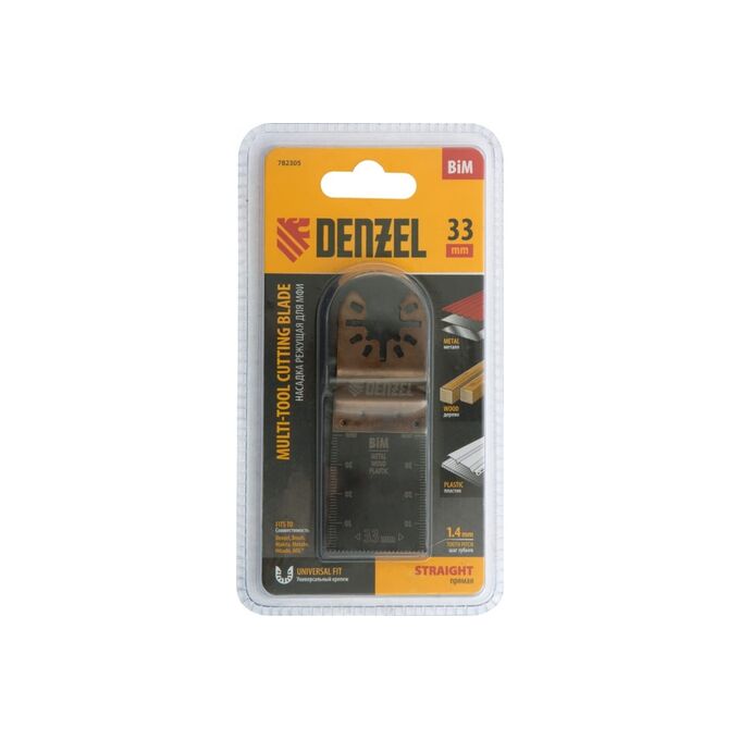 Насадка для МФИ Denzel 782305 режущая пазовая прямая, BiM, по металлу и дереву, 33x1,4мм, мелкий зуб