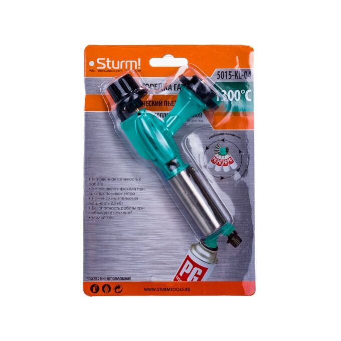 Насадка-горелка Sturm 5015-KL-04 предназначена для установки на газовый баллон. Выполнена в металлическом корпусе, оборудована керамическим соплом. Предусмотрен кнопочный пьезоподжиг, регулятор интенсивности пламени, защита от задувания ветром. Изделие имеет функцию свободного вращения (после 2 мин использования).