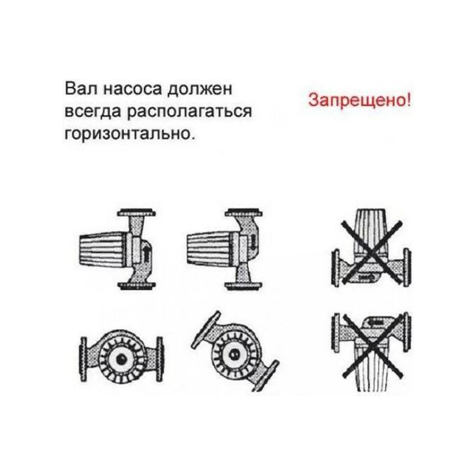 Ось насоса должна быть установлена в горизонтальном положении. Установка оси насоса в другое положение приведет к преждевременному износу подшипников и блокировке насоса,