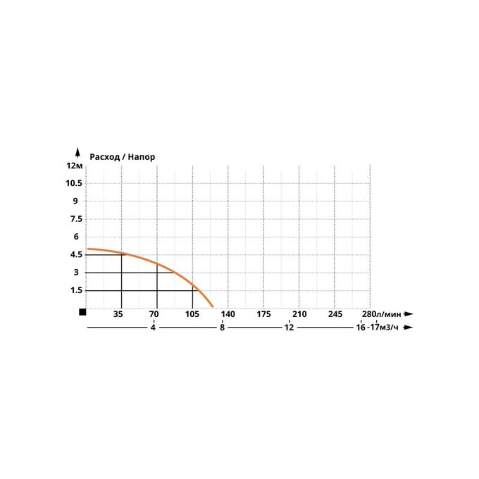 Насос обладает отлично сбалансированными напорно-расходными характеристиками при производительности насоса 125 л/мин.