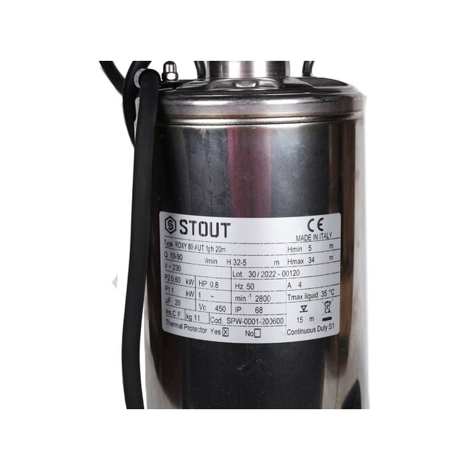 Насос колодезный STOUT Spw-0001-200600 (RG0091CN94I223) с поплавком, кабель 20 м, 230v, q=90 л/мин, h=34 м