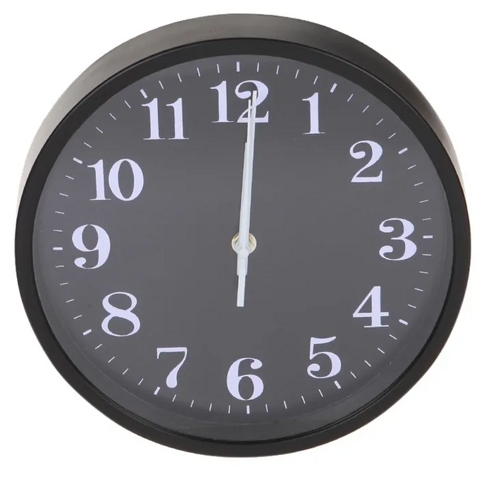 Настенные часы Perfeo PF-WC-002, PF_C3059 круглые д. 25см, чёрный корпус/чёрный циферблат