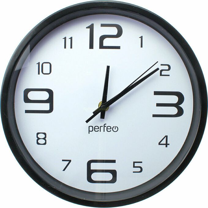 Настенные часы Perfeo PF-WC-002, PF_C3062 круглые д. 25см, чёрный корпус/белый циферблат