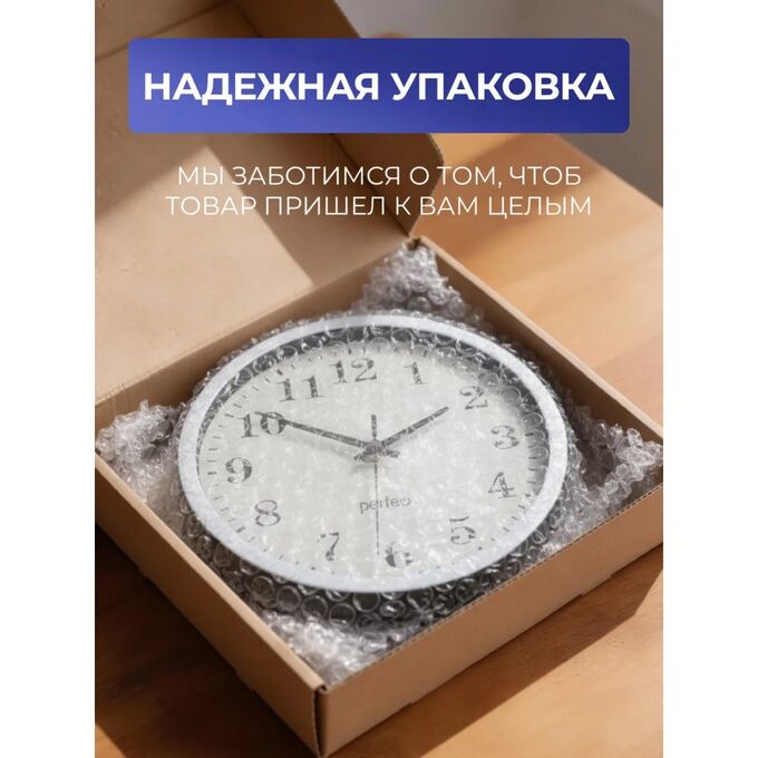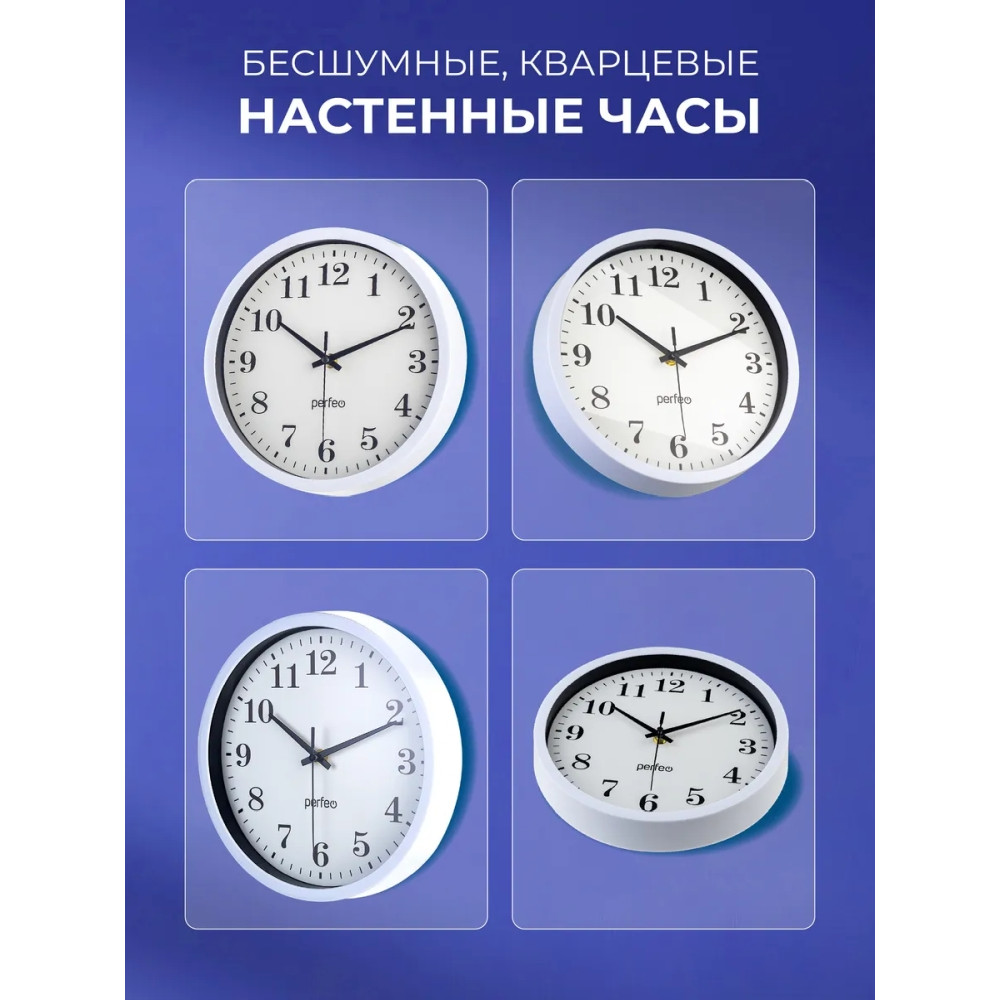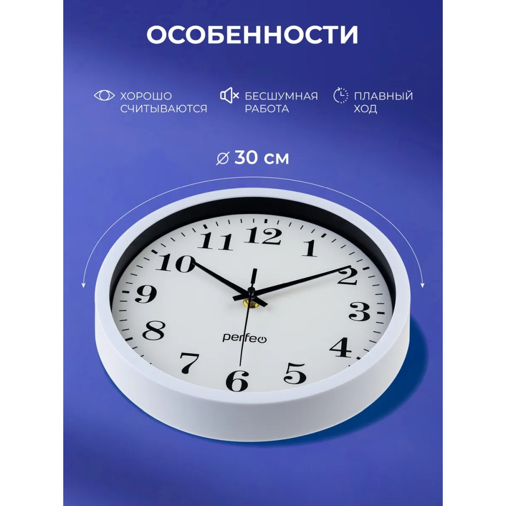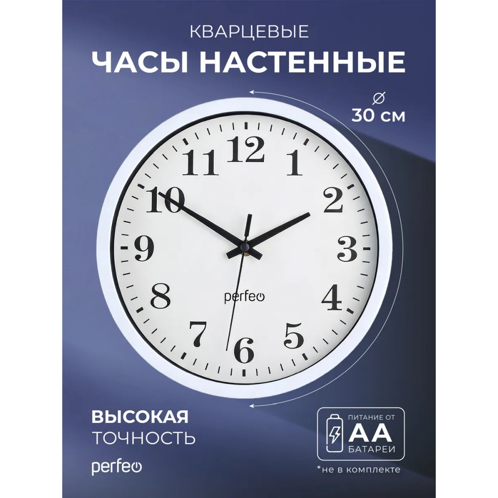 Настенные часы Perfeo "PF-WC-003"(С2), круглые д. 30 см, белый корпус / белый циферблат, (Арт. PF_D0372)