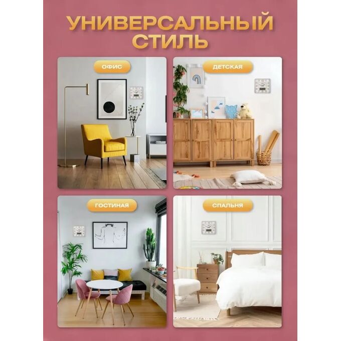 Часы настенные бесшумные прямоугольные с термометром и календарем не только показывают точное время, но и температуру и дату. Размер 34*30 см. Также, белые часы большие декоративные являются прекрасным украшением для любого домашнего интерьера гостиной, кухни, зала или спальни. Изготовленные из качественного пластика, они обладают неповторимым стилем и элегантностью, которая великолепно сочетается с любым декором. Прямоугольный циферблат этих красивых кухонных часов, который светится в темноте, имеет четкие большие цифры и стрелки, что позволяет легко прочитать время даже в ночное время суток. Часы интерьерные, благодаря своему механизму, работают от батареек без боя и шума, что делает их идеальным выбором для спальни, зала, детской комнаты, кухни или офиса. Часы светящиеся в темноте также могут служить как декоративный элемент в любой комнате или кухне, благодаря своему классическому дизайну и цветовому решению. Сочетание классики и лофт стиля определят достойное место на стене вашего дома и станут украшением интерьера. Отличный подарок! Они будут прекрасным выбором для любого человека, кто ценит красивые и функциональные предметы в своем доме или офисе. Настенные часы на кухню станут отличным подарком любой женщине.