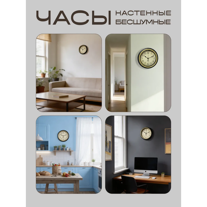 Часы настенные бесшумные круглые в классическом исполнении показывают точное время. Большие декоративные настенные часы являются прекрасным украшением для любого домашнего интерьера гостиной, кухни, зала или спальни. Изготовленные из качественного матового пластика, они обладают красивым стилем и элегантностью, которая великолепно сочетается с любым декором. Круглый циферблат этих красивых кухонных часов имеет красивые большие арабские цифры, что позволяет легко прочитать время. Часы интерьерные, благодаря своему механизму, работают от батареек без боя и шума, что делает их идеальным выбором для спальни, зала, детской комнаты, кухни или офиса. Часы настенные винтажные могут служить как декоративный элемент в любой комнате или кухне, благодаря своему классическому дизайну и цветовому решению. Сочетание классики и лофт стиля определят достойное место на стене вашего дома и станут украшением интерьера. Отличный подарок! Они будут прекрасным выбором для любого человека, кто ценит красивые и функциональные предметы в своем доме или офисе. Настенные часы на кухню станут отличным подарком любой женщине.