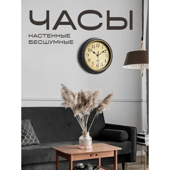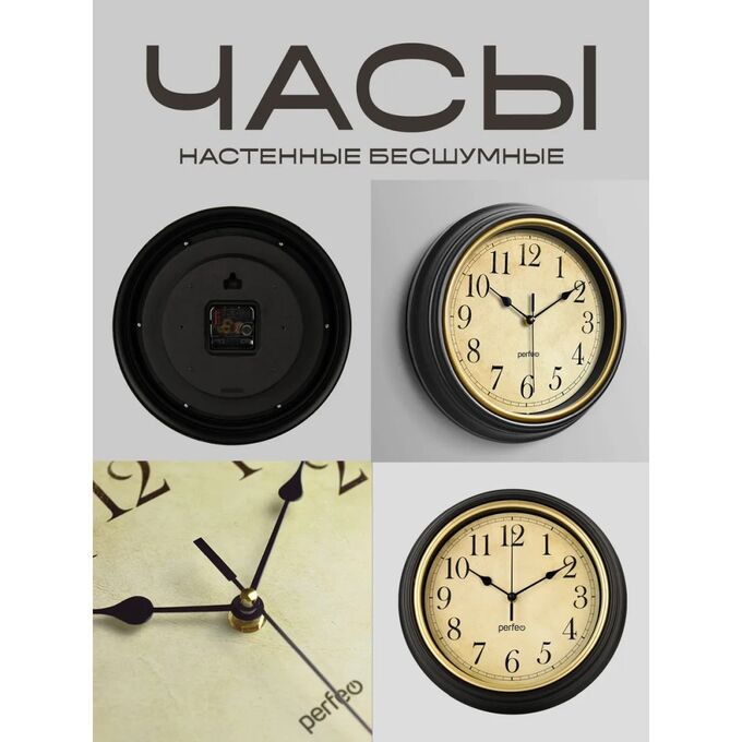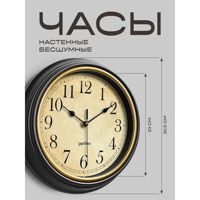 Настенные часы Perfeo "PF-WC-022"(С1) круглые д. 30 см, коричневый корпус / бежевый циферблат, (Арт. PF_E2063)