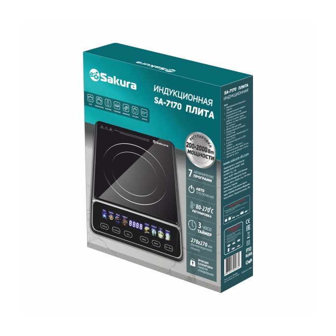 Дополнительные характеристики: отсрочка старта до 24 часов, варочная панель: 270*270мм, подходит для посуды диаметром от 12 до 26 см, максимальная нагрузка: 8 кг