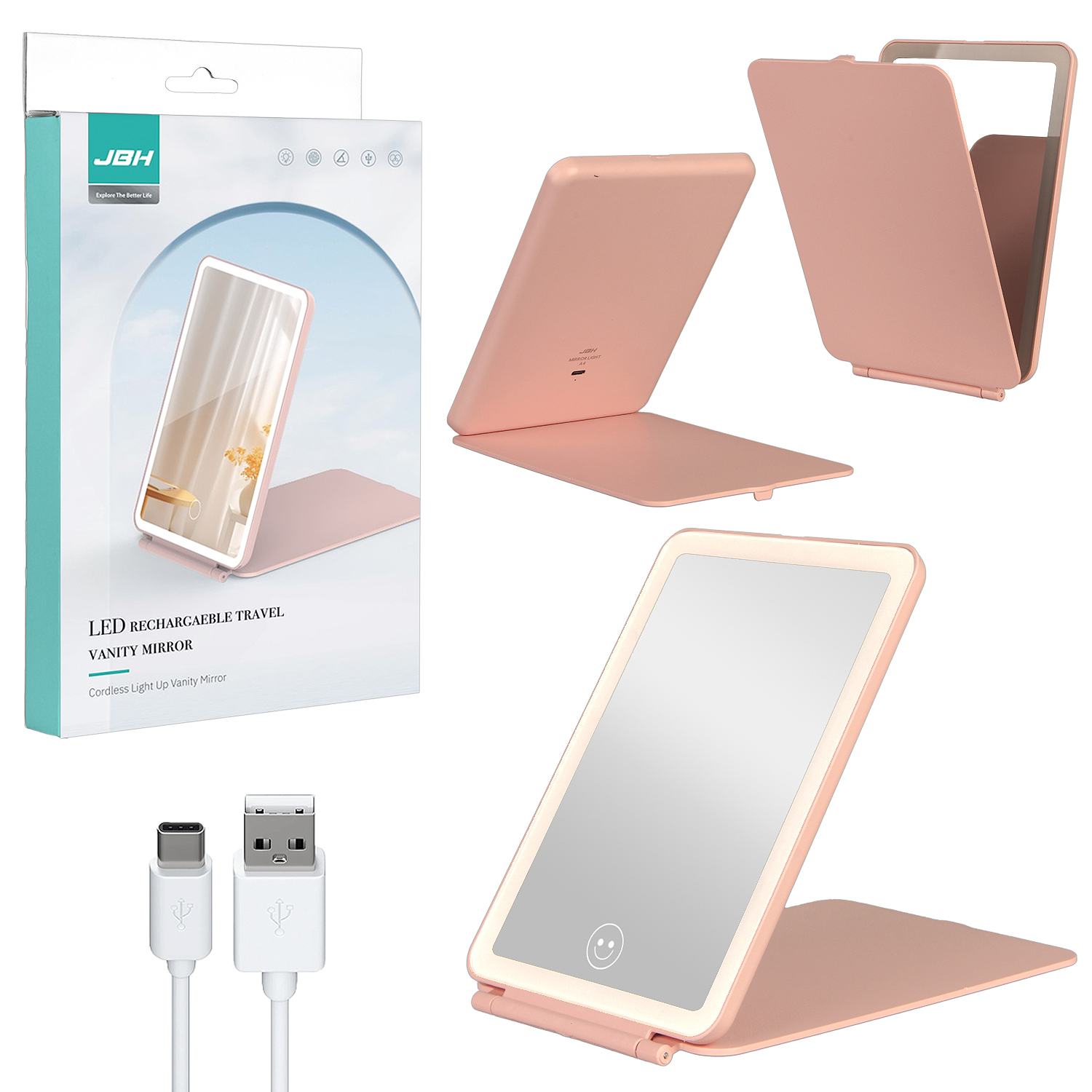 Настольное зеркало для макияжа с подсветкой A4 (Pink)