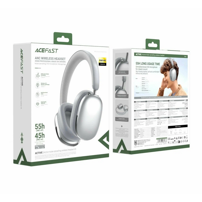 Наушники ACEFAST H9 active noise cancelling wireless headset Silver
