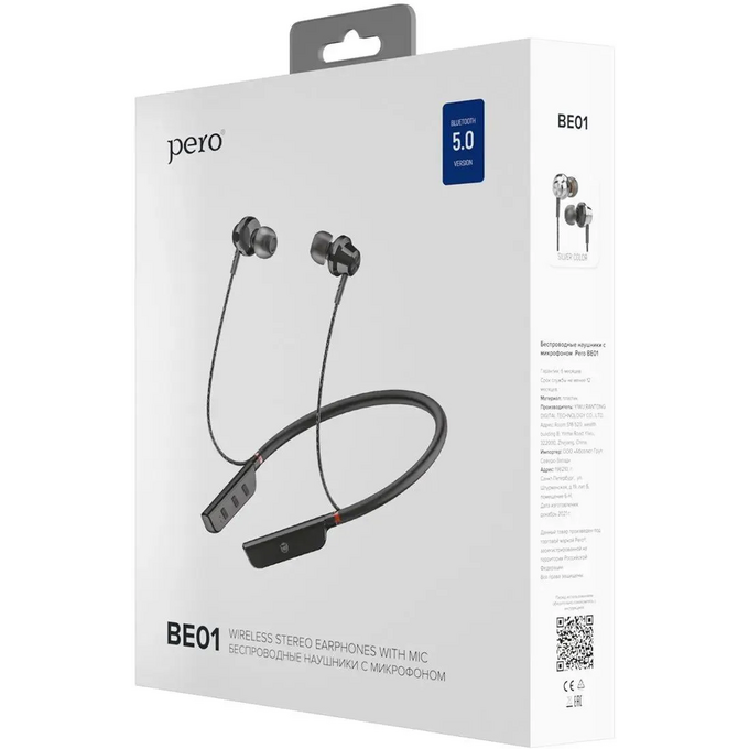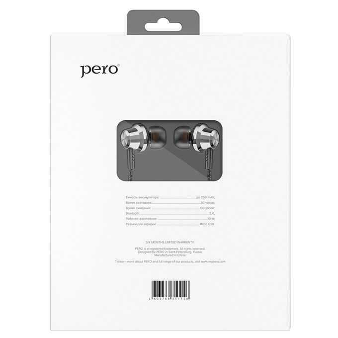 Наушники беспроводные PERO BE01 Silver (PWH-BE01S) вакуумные