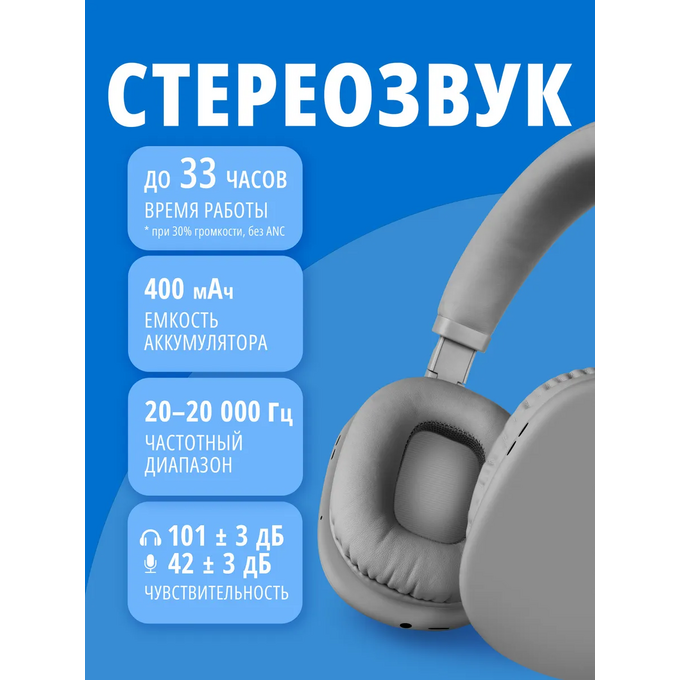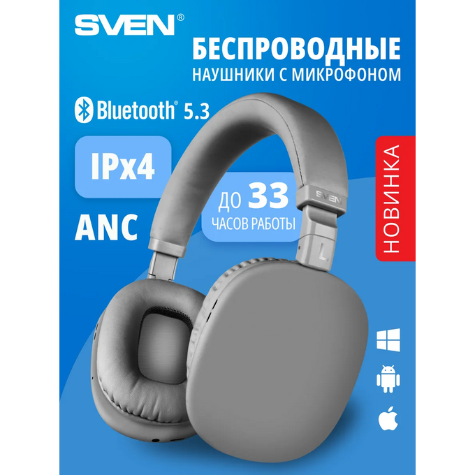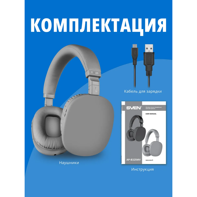 Наушники bluetooth полноразмерные с микрофоном SVEN AP-B325MV, серый