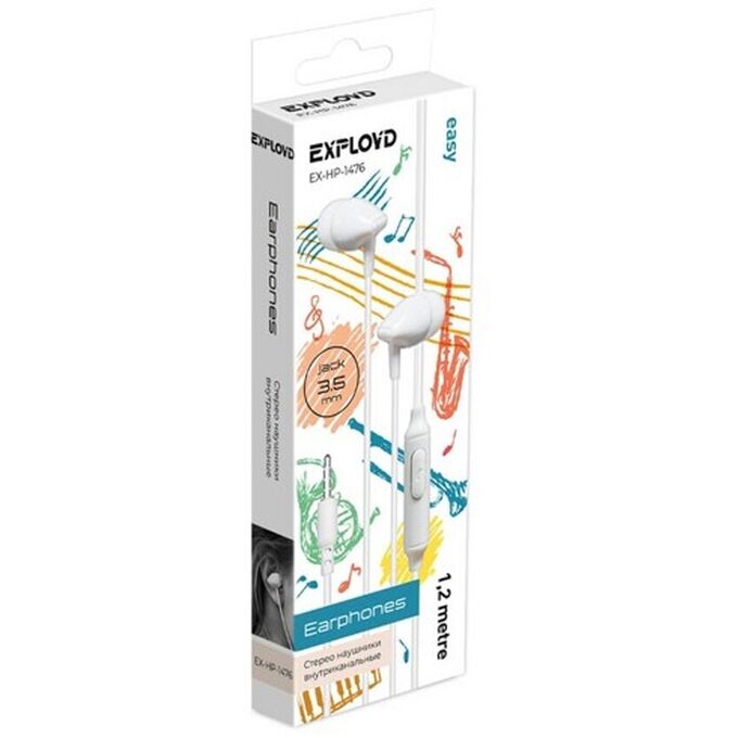 Наушники EXPLOYD EX-HP-1476 3.5mm/белый/1.2М/Easy
