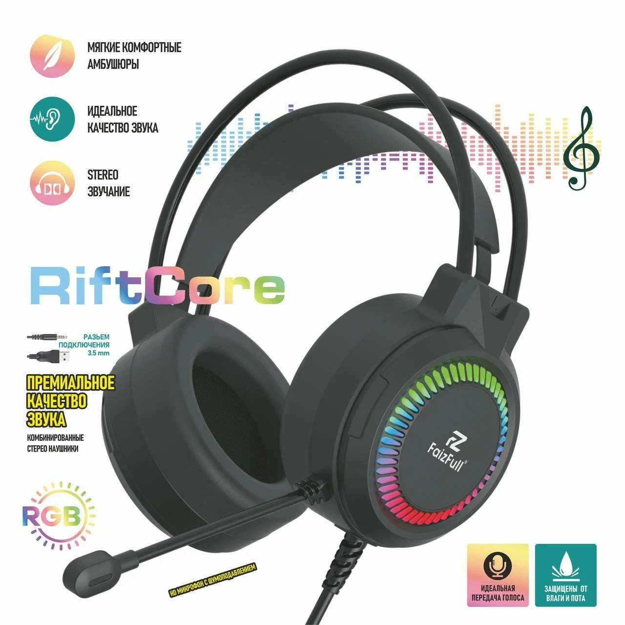 Виртуальный объемный звук 7.1. Динамическая RGB-подсветка. Микрофон с шумоподавлением.