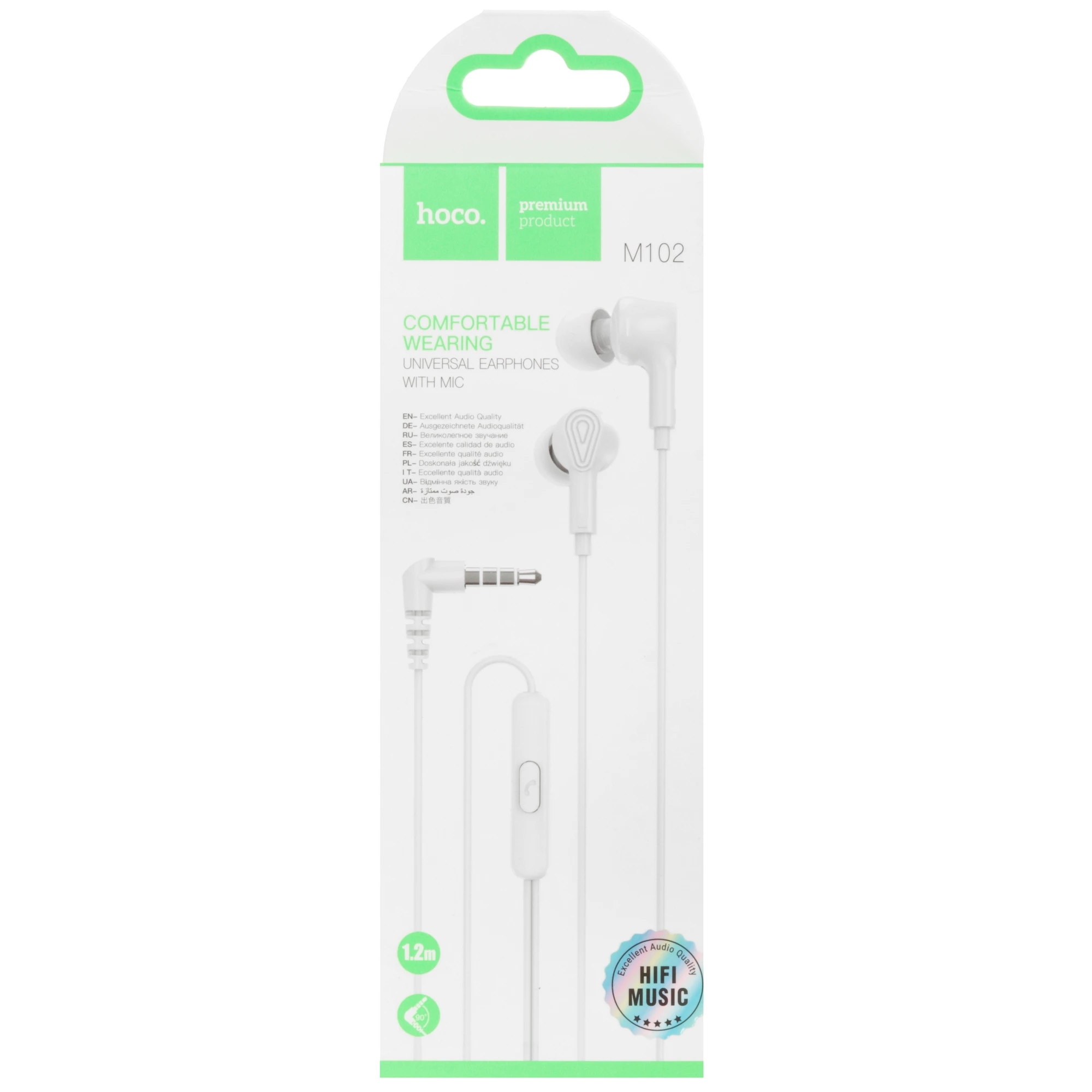 Наушники Hoco M102 Ingenious universal earphones with microphone White