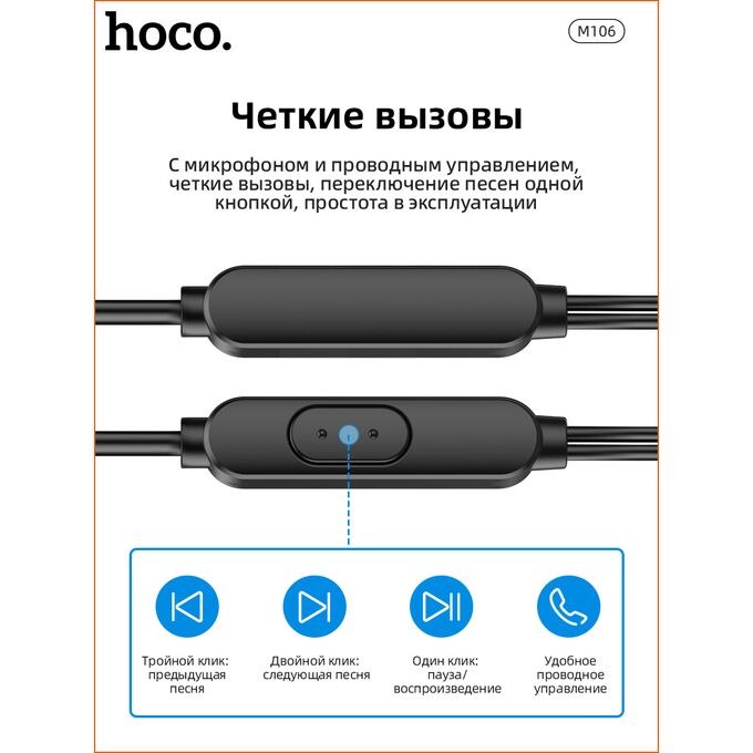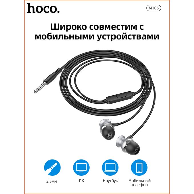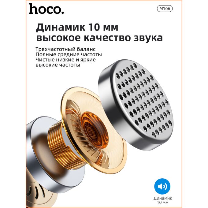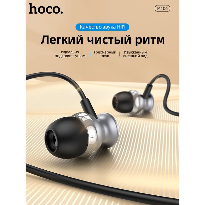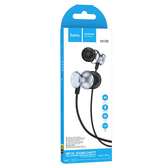 Наушники M106, Fountain metal universal earphones, HOCO, вакуумные, серые