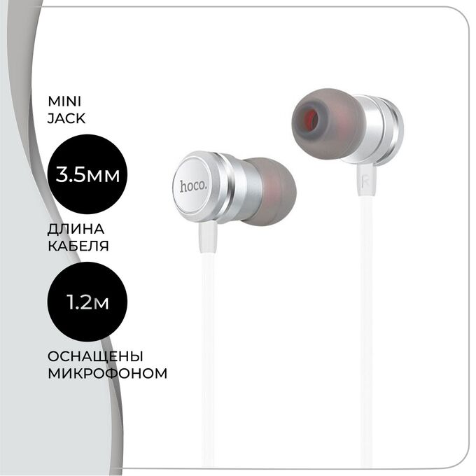 Наушники HOCO M16 Ling sound metal with mic (серебро)